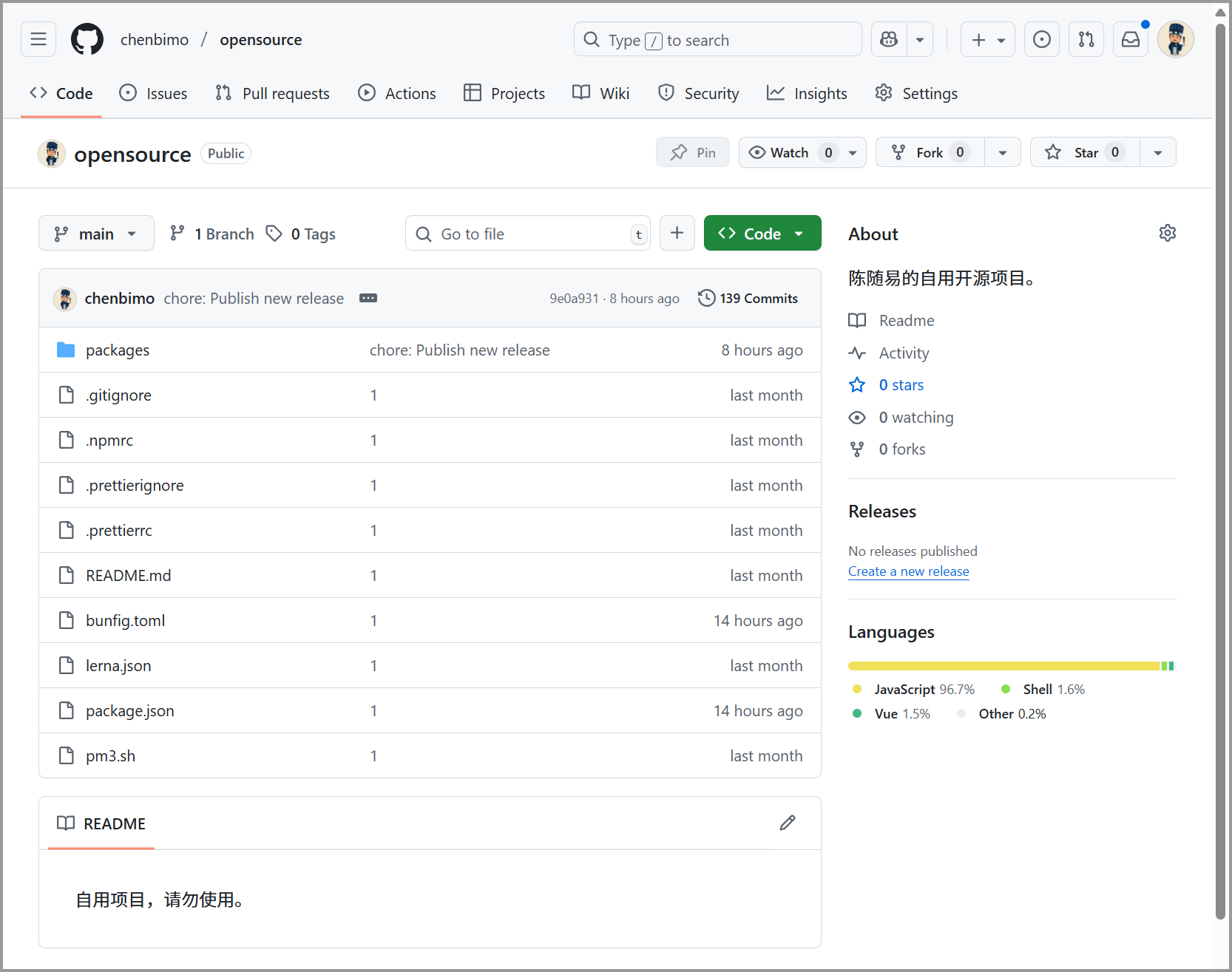 当然,如果大家有兴趣,我也不拦着,可以前往仓库 https://github.com/chenbimo/opensource