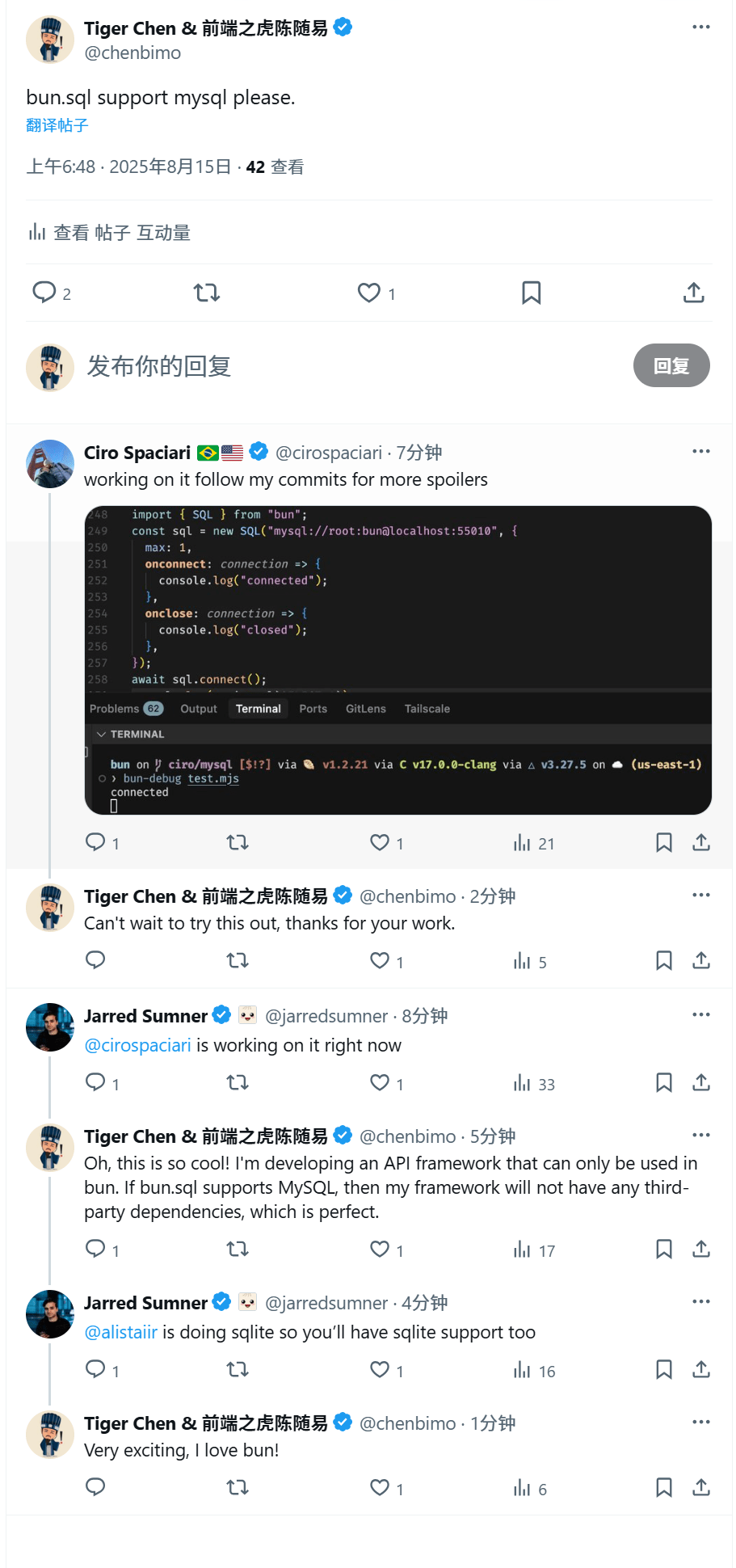 则是为 Bun 量身打造的接口框架,用到了 Bun 独有的一些 API,只能在 Bun 中运行,这也是我自从 All in Bun