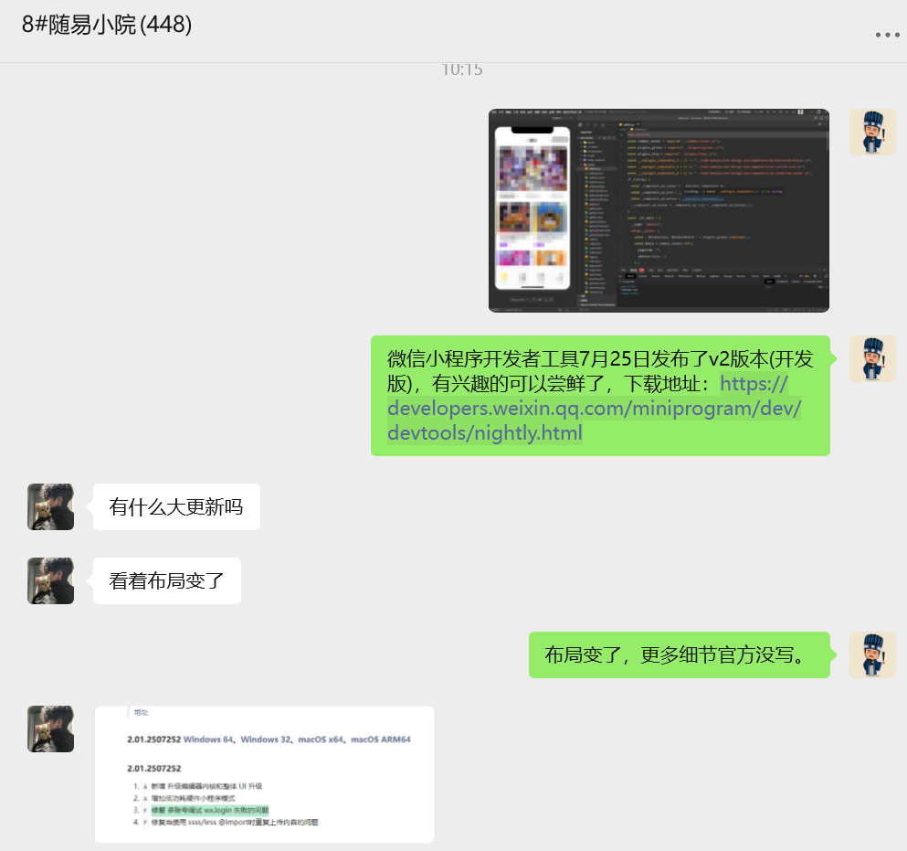 的好奇,于是把这个分享到几个技术群里,大家还挺感兴趣的,但官方那寥寥几句更新日志,也看不出具体更新了什么。