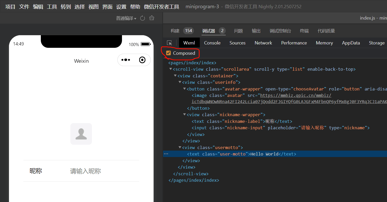 以防有朋友不知道,在调试的时候,记得把 Composed
