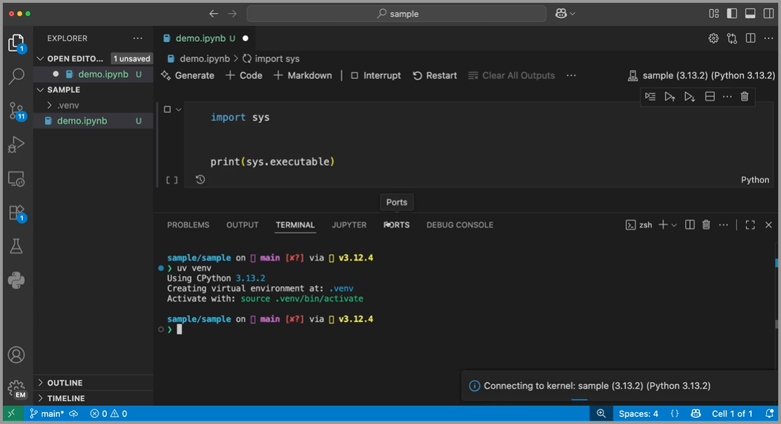 若要在分阶段推送期间使用 Python 环境扩展,请确保该扩展已安装,并向 VS Code 的 settings.json 文件中添加以下内容:"python.useEnvironmentsExtension": true
