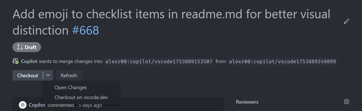 复制操作现已移至拉取请求链接的右键上下文菜单中。