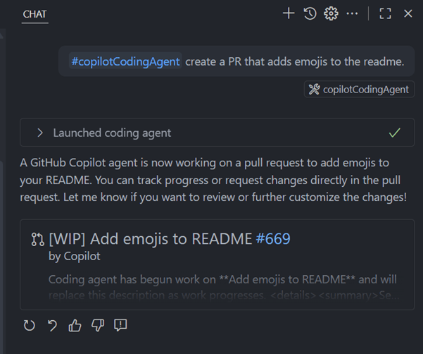 在聊天中显示编码代理的 PR