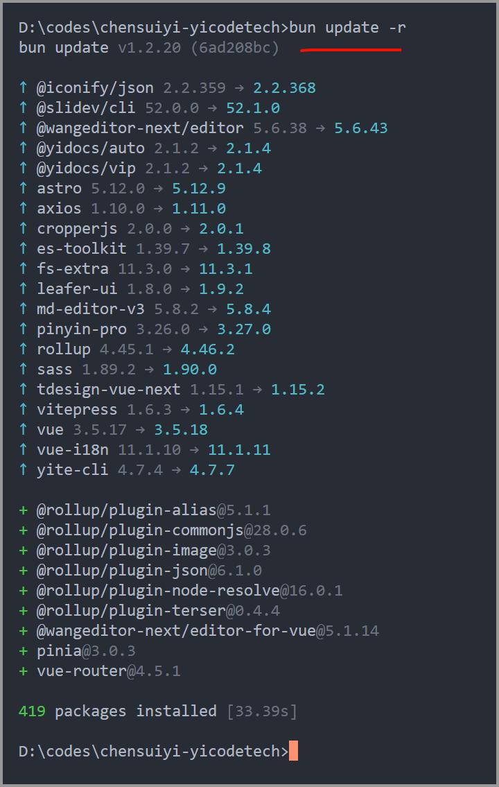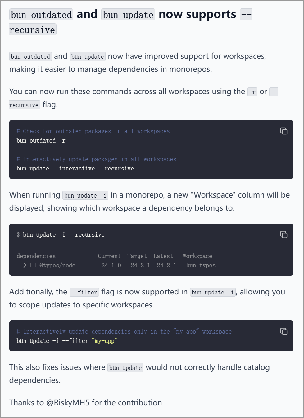 有个问题困扰我已久,简直如鲠在喉,如芒在背,那就是 bun 不支持 bun update -r