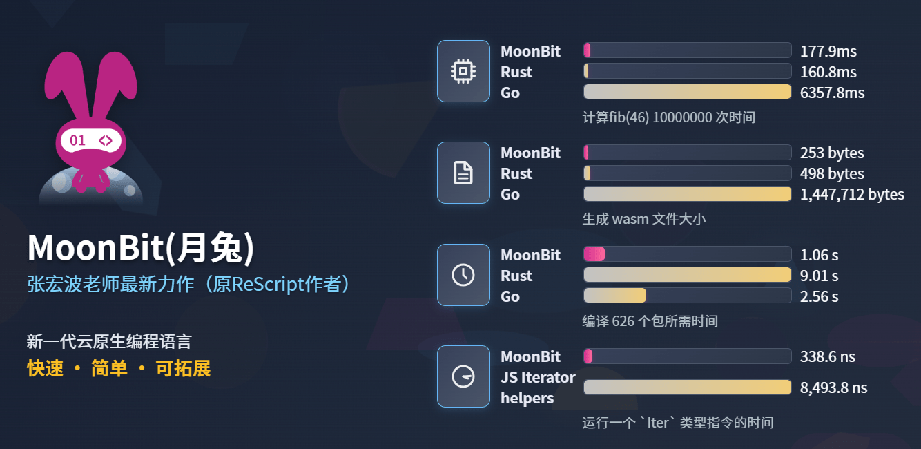 MoonBit 的表现,让我眼前一亮,尤其是它的 wasm 产物,说是如今编程语言的天花板也不为过,而这,就是我一直在苦苦寻找的东西。