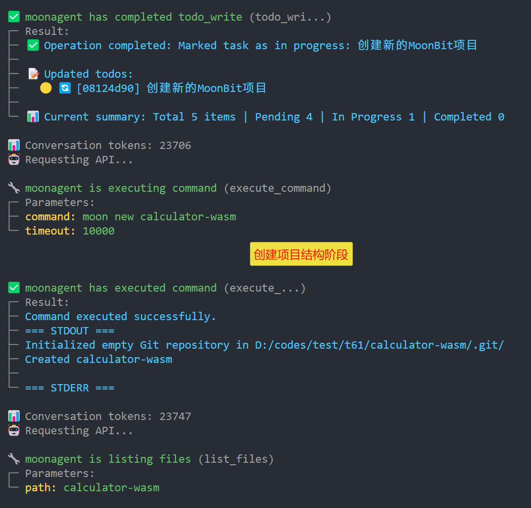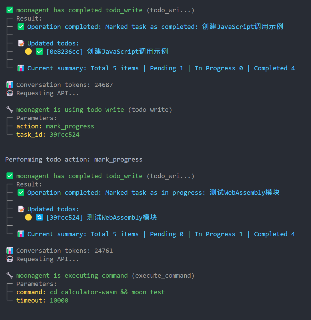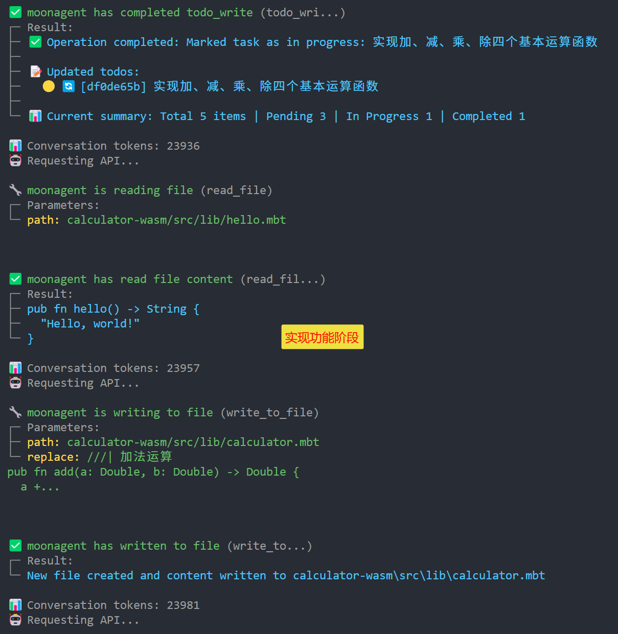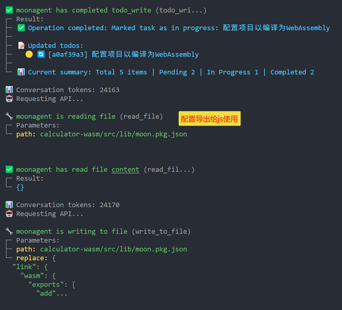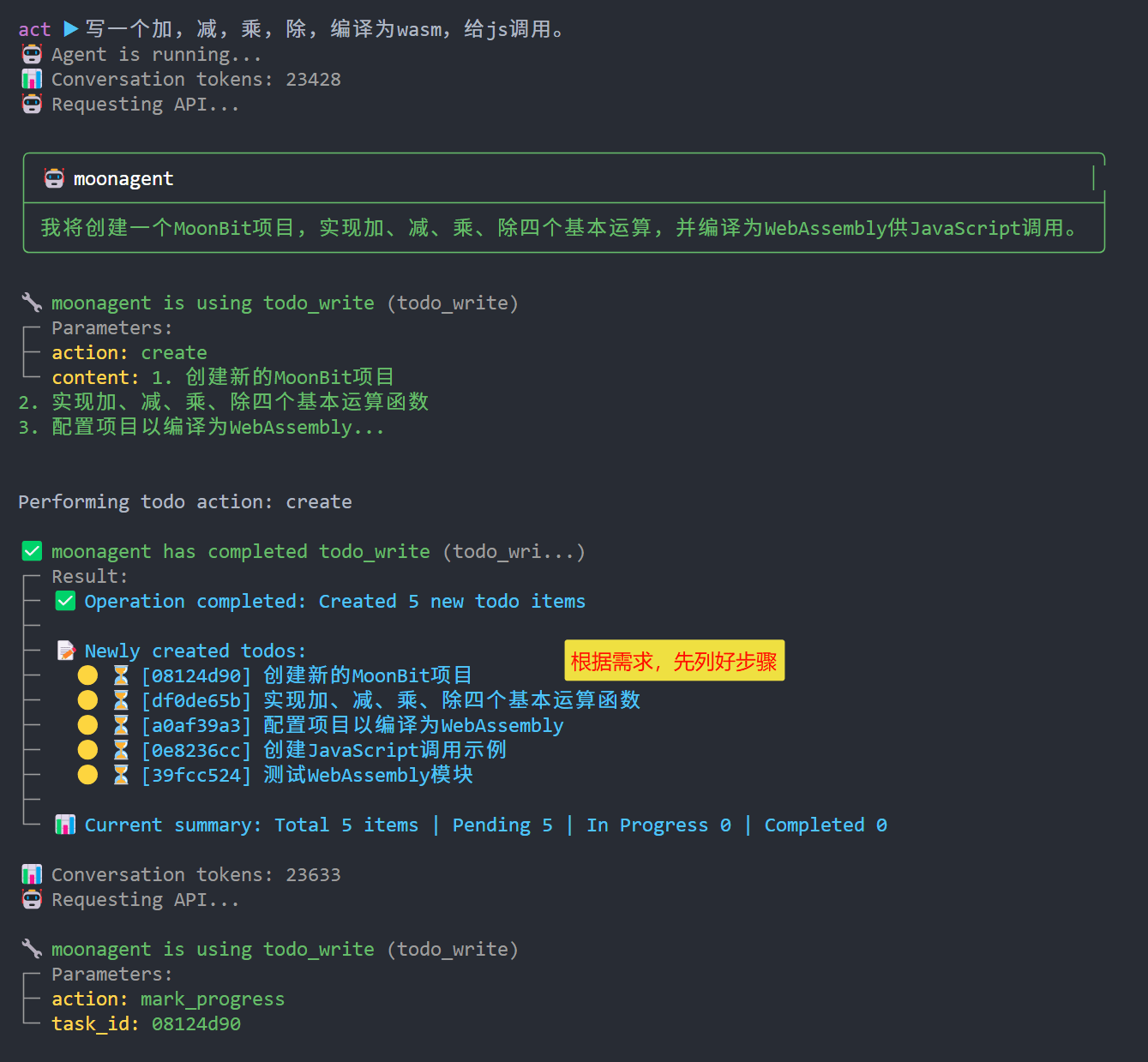 接下来呢,MoonBit Pilot 会根据需求,列好操作步骤,待办任务。