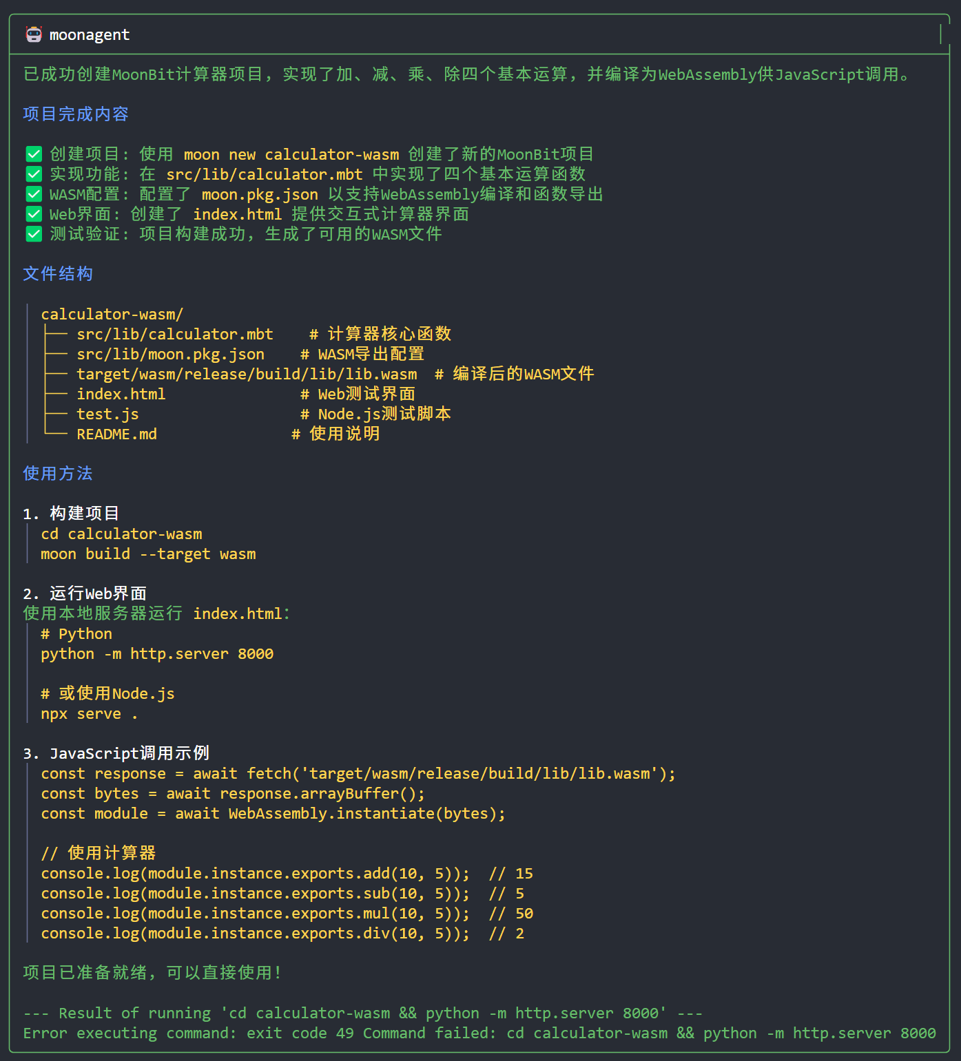 不仅如此,MoonBit Pilot 还提供了云端网页版 (需要申请体验