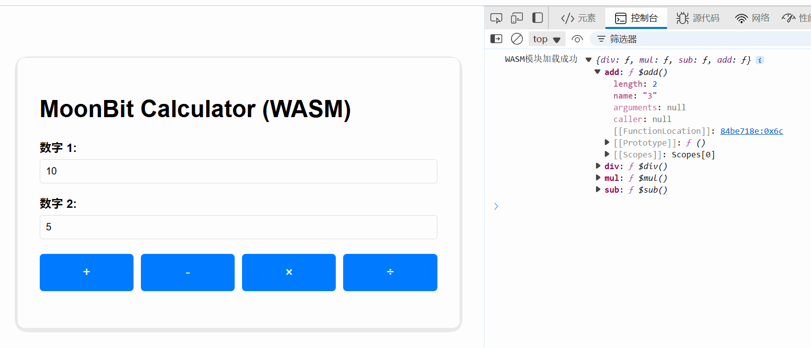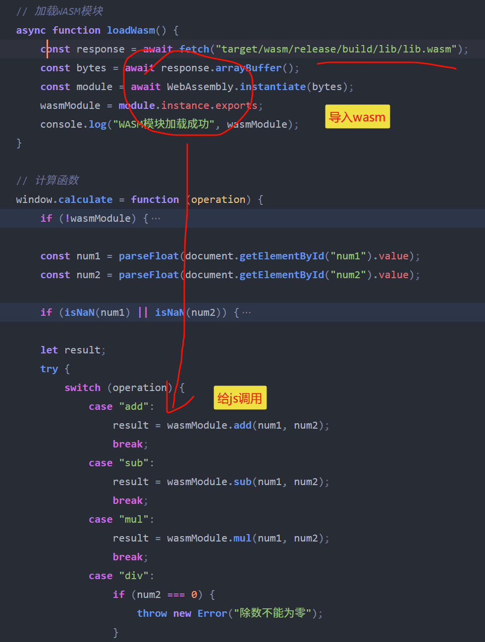 比如,我这里的提示词是:写一个加,减,乘,除,编译为wasm,给js调用。