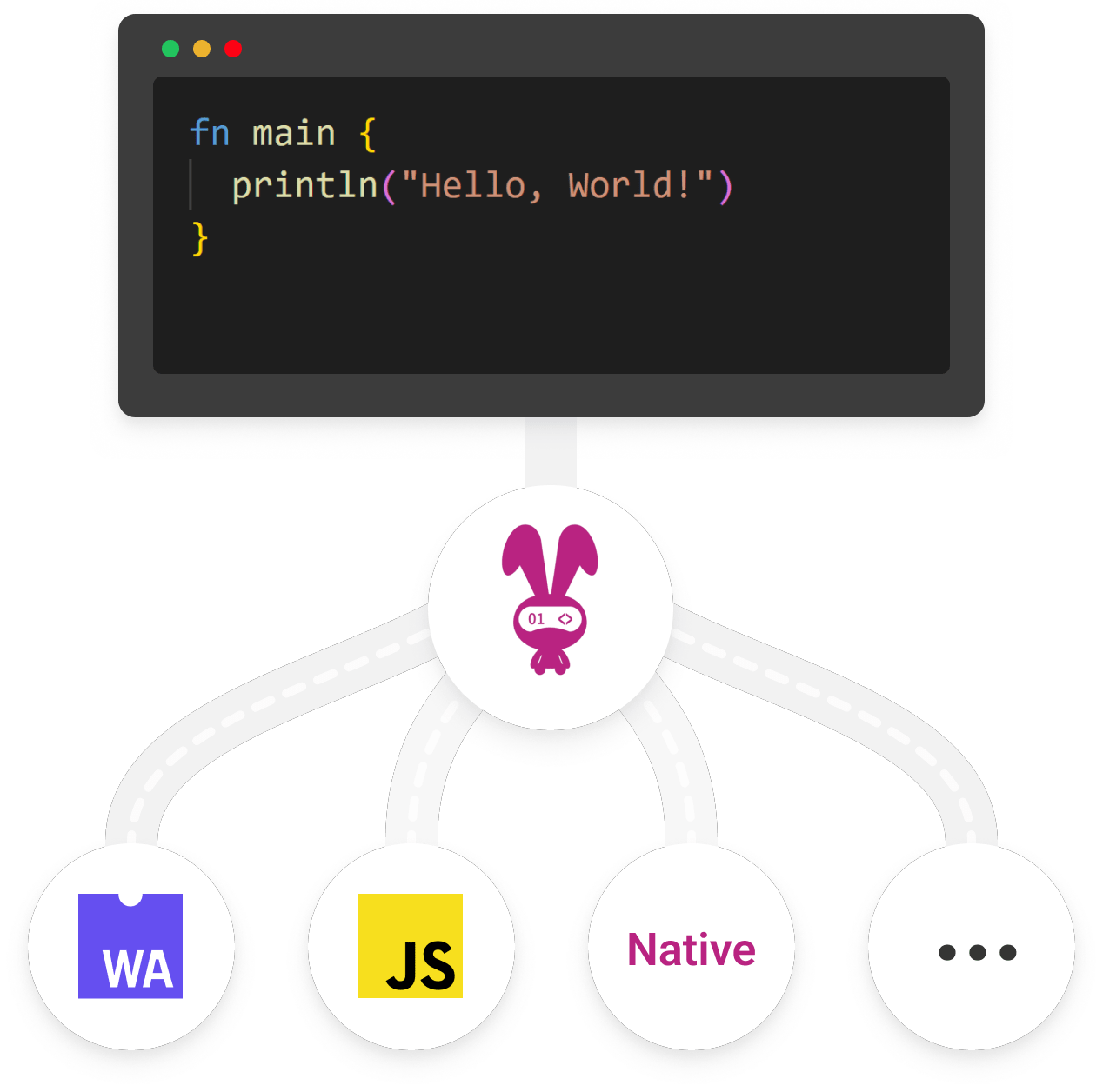 除 wasm 之外,MoonBit 还支持编译为 js 和原生机器码直接在硬件上运行,未来还将支持更多语言。